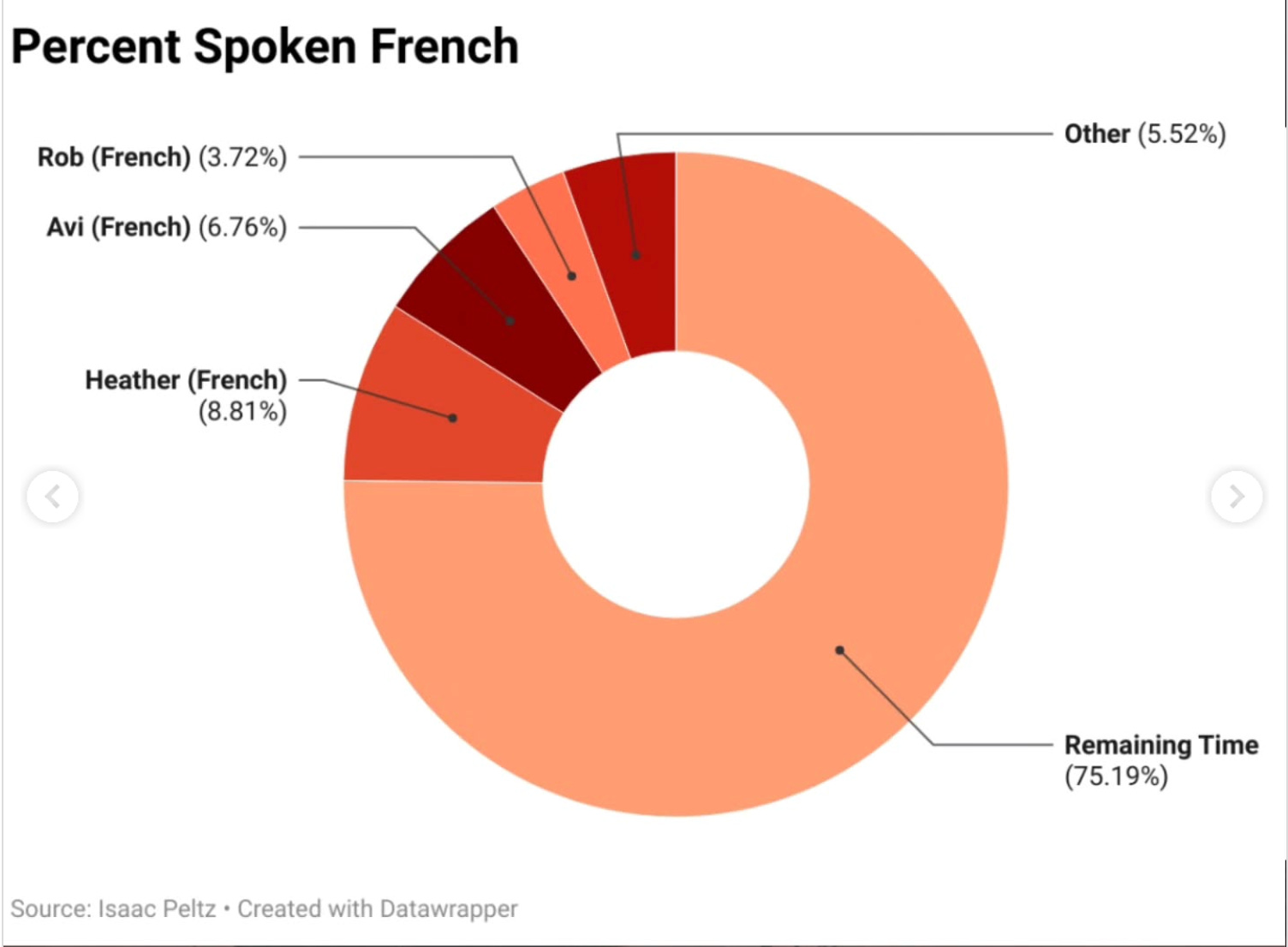 In the end, things fell well short of even this more conservative goal. According to this estimate from Isaac Peltz — who convincingly suggests that the party may well have violated its own stated rules for the race — only about 19% was actually carried out in French.